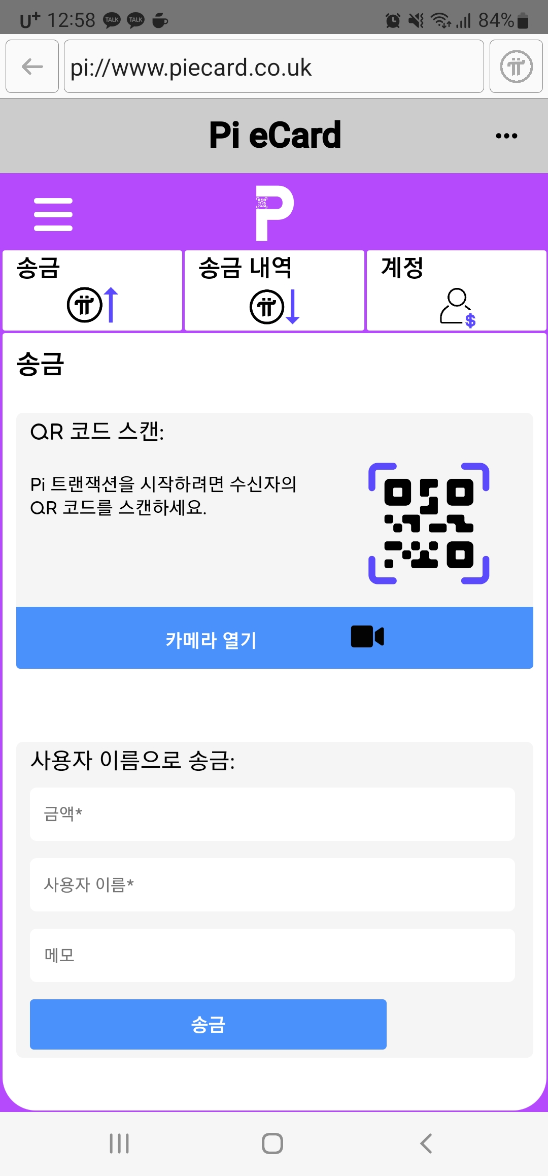 큐알이나 사용자 이름으로 파이를 받거나 보낼 수 있어 지갑보다 사용이 수월하며, 수수료가 적기 때문에 빈번하게 적은 금액을 주고 받을 때 아주 유용합니다.