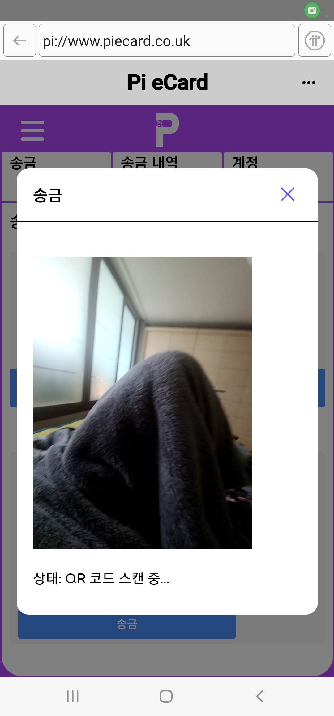 보낼 사람은 "카메라 열기"를 눌러 받을 사람이 보여주는 큐알코드를 촬영합니다.