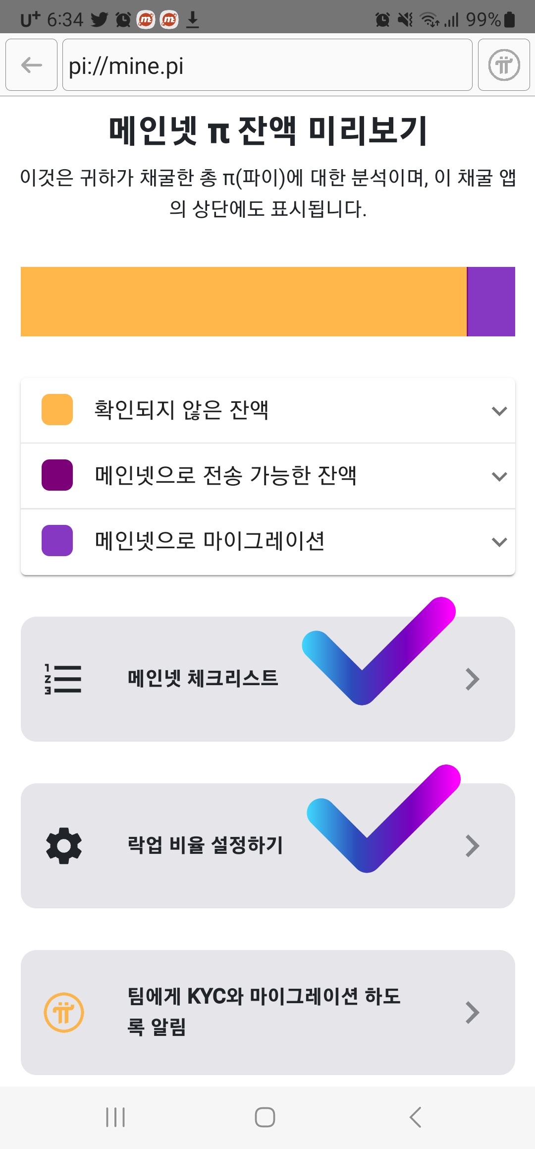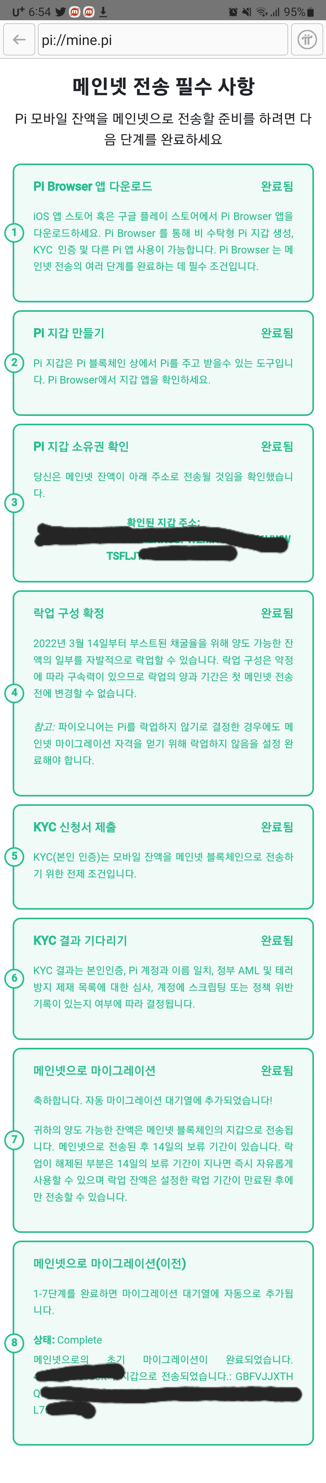 채굴한 코인을 받을 수 있는 조건이 되도록 필수 사항들을 8단계까지 체크하도록 하고 있다.