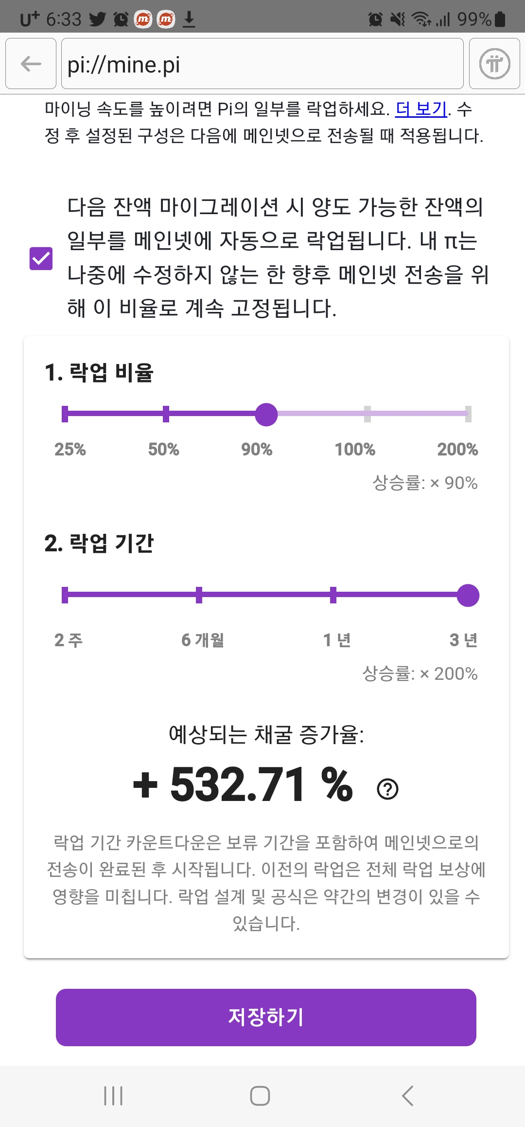 디폴트 3년 90프로 되어 있으나 "저장하기"는 반드시 눌러야 한다.