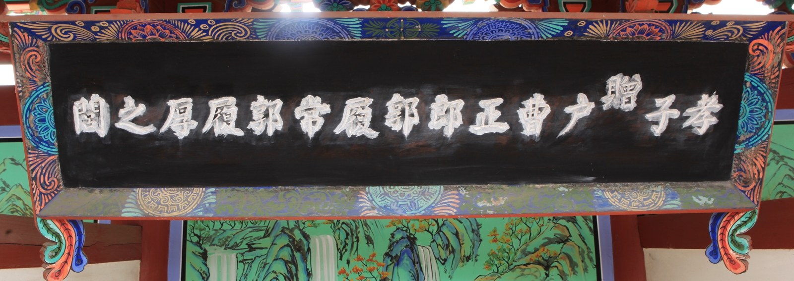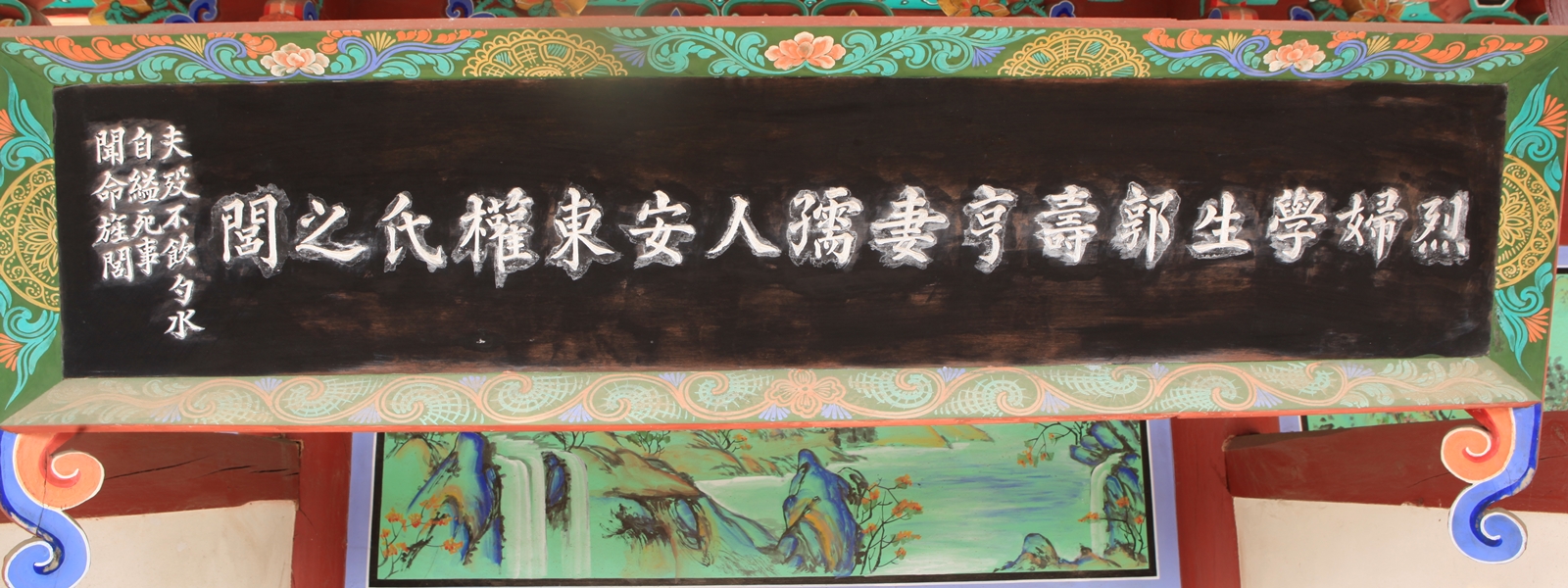 12정려각의 우측부터 려각 안쪽과 현판 및 기둥의 주련들을 살펴보면 아래와 같다.