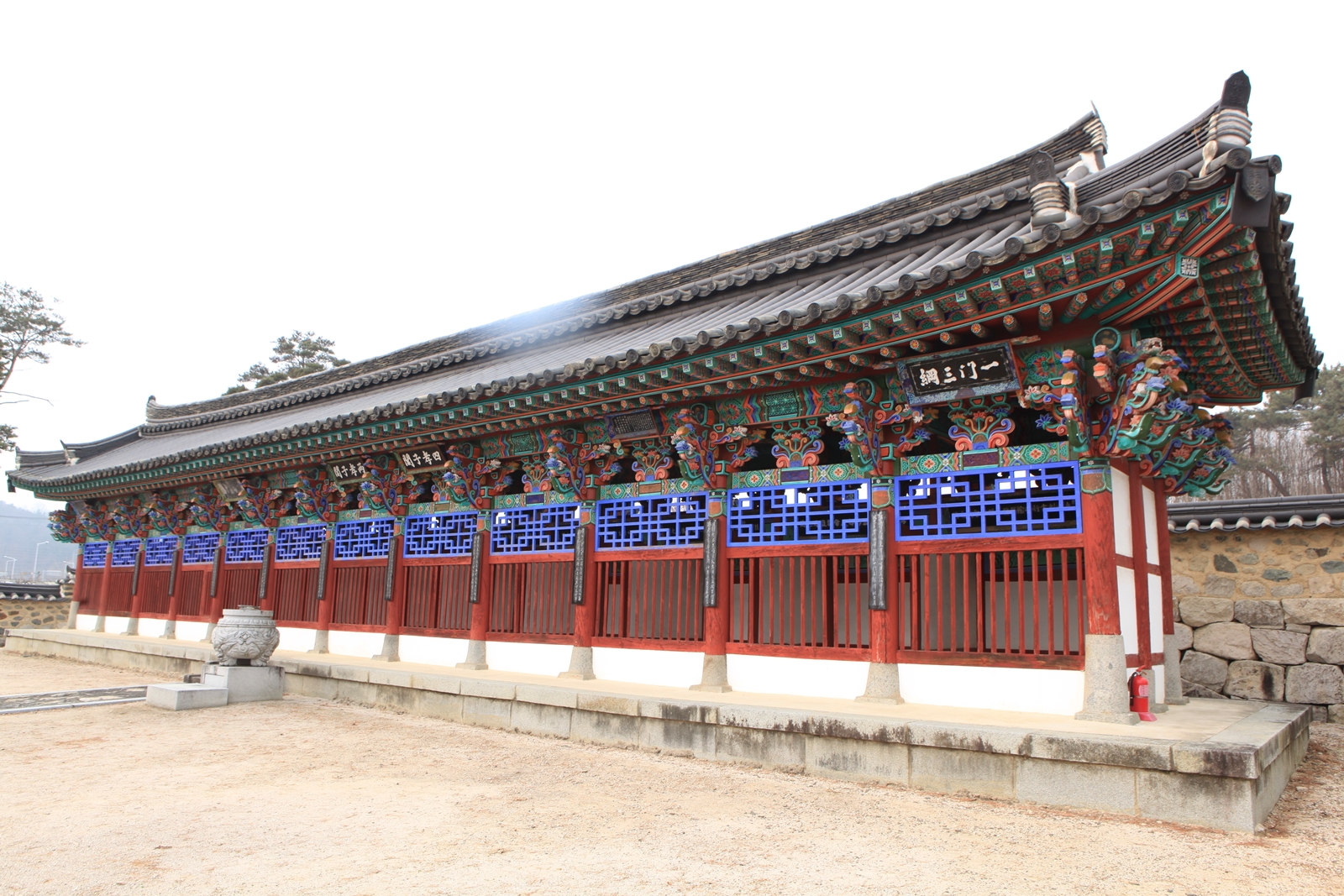 현풍 곽씨 12정려각 입구에 삼강문(三綱門) 현판이 걸려 있다. 삼강은 군위신강(君爲臣綱)·부위자강(父爲子綱)·부위부강(夫爲婦綱)이다. 순서대로 임금은 신하의 근본, 어버이는 자식의 근본, 남편은 아내의 근본이라는 뜻이다. 삼강의 핵심은 충(忠)·효(孝)·열(烈)로 오륜과 함께 조선을 지배한 기본 이데올로기였다.