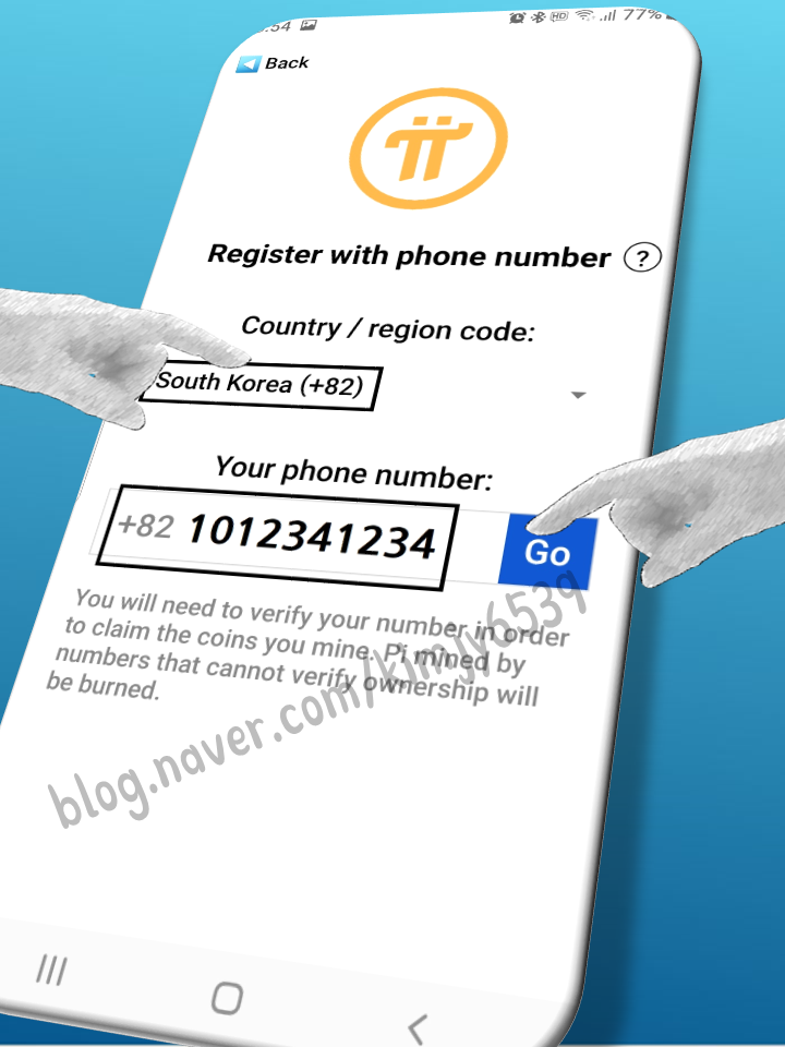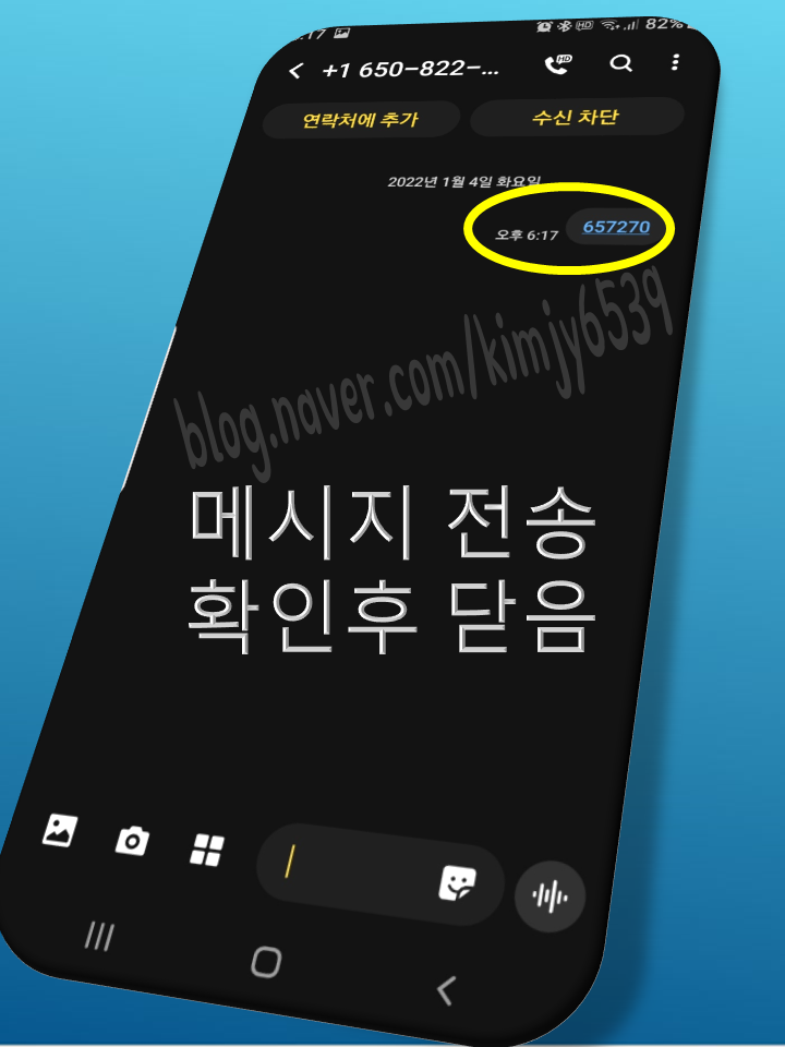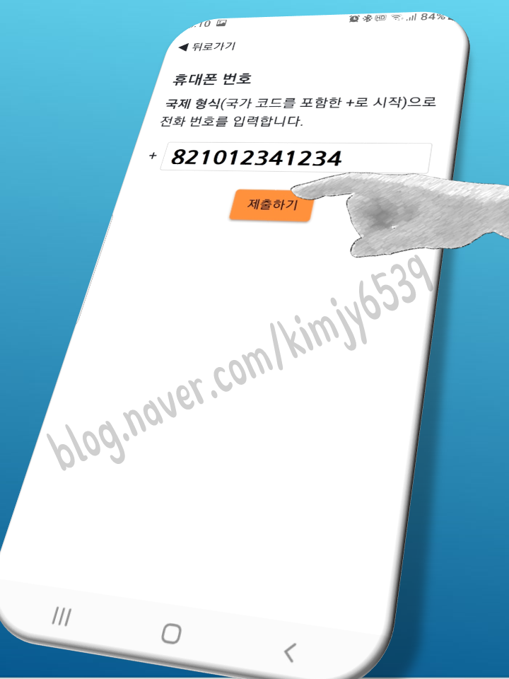 South Korea (+82)를 선택하고 휴대폰 번호를 입력 합니다.